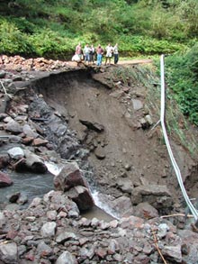 Gewütet hat auch der Prantlbach in St. Leonhard. Das angeschwemmte Material hat hier eine Straßenunterquerung verstopft, sodass die Wassermassen über die Straße von Schweinsteg zu den Kofelhöfen hinausgeschossen sind und die Straßenböschung weggerissen haben. "Wir haben hier die Unterquerung freigeräumt, das Bachbett gesäubert und die Böschung zwischen Straße und Bach mit einer Zyklopenmauer gesichert", so Spagnolo. Am Prantlbach sind zwar die dringlichen Arbeiten abgeschlossen, die Arbeiter der Wildbachverbauung werden hier aber wieder auftauchen. "Die Folgen der Juli-Unwetter haben uns gezeigt, dass am Prantlbach auf längere Sicht einige Sicherungsarbeiten notwendig sind", erklärt dazu Direktor Spagnolo.