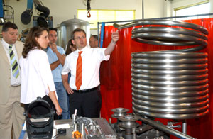 „Gerade bei den Kühlsystemen ist die Nutzung von erneuerbarer Energie noch voranzutreiben“, unterstrich Landesrat Laimer bei seinem Besuch in der Firma. Die Nutzung alternativer Energiequellen für Heiz- und Kühlsysteme könne das Ungleichgewicht zwischen dem Angebot an traditioneller Energie und dem tatsächlichen Energiebedarf zu bestimmten Zeiten im Jahr ausgleichen, sagte Laimer. Der Landesrat kündigte außerdem an, sich dafür einzusetzen, dass die Aktivierung solcher Systeme, die mit Alternativenergie laufen, vom Land gefördert werde. Das Thema „Solarkühlanlagen“ sollte auch im Master-Lehrgang „Klimahaus“, der 2006 an der Freien Universität Bozen starten soll, behandelt werden, meinte der Energielandesrat. Die Firmenleiter Stefanie und Markus Ebner berichten dem Landesrat, dass das Interesse an den Solarkühlanlagen auf europäischer Ebene groß sei. In diesem Bereich würde sich eine Nische für einen neuen Markt auftun. Das Unternehmen ist auch an CAN, dem Clusterentwicklungsprogramm des Ressorts für Industrie beteiligt.