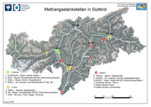 Wer sich dafür interessiert, wo er in Südtirol Methan tanken kann, kann dies im Südtiroler Bürgernetz tun, und zwar unter der Adresse www.provinz.bz.it/wirtschaft/3503/distributori_d.htm.