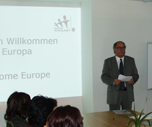 LPA - Die Mittelschule St. Johann beteiligt sich zusammen mit sechs weiteren Schulen am Comenius-Projekt „Our Culture @ Our Europe“. Diese EU-Initiative läuft über einen Zeitraum von drei Schuljahren und soll bei Schülern und Lehrkräften ein Zugehörigkeitsgefühl zu einer aufgeschlossenen und vielfältigen europäischen Gemeinschaft fördern. Heute Freitag, 28. Oktober, statteten die Projektpartner Bildungslandesrat Otto Saurer in Bozen einen Besuch ab.