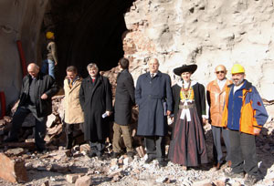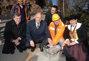 LPA – Landeshauptmann Luis Durnwalder und Bautenlandesrat Florian Mussner haben heute (18. November) selbst Hand angelegt, um mit einer letzten Sprengung den 700 Meter langen Tunnel auf der neuen Straße nach Pufels (Gemeinde Kastelruth) endgültig zu durchstechen. Der Tunnel ist das Herzstück der neuen Verkehrsanbindung für den Ort im Schlerngebiet.