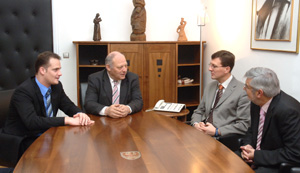 Bei dem heutigen Kurzbesuch des neuen Unterrichtsministers bei LH Durnwalder waren auch Schulamtsleiter Peter Höllrigl und der Direktor des Pädagogischen Instituts, Rudolf Meraner, anwesend.