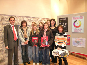 Auf Rang drei landete Stefania Nones, die im Vorjahr die vierte Grundschulklasse in Neumarkt besucht hat. Ihre Arbeit überzeugte die Jury "durch ihre feine, sensible, graphische und malerische Ausführung". Ihre Mühen sah die Schülerin heute durch ein Paar Schneeschuhe belohnt, die sie aus den Händen von Landesrat Theiner entgegen nehmen konnte. Ausgezeichnet wurde schließlich auch die originelle Idee von Anna Markart und Silvia Überbacher, wie die Erstplatzierten von der Mittelschule Mühlbach, die auf ihrem Plakat eine Zigarette als Uhrzeiger dargestellt haben. "Als Werbeplakat für den Schutz der Gesundheit der Nichtraucher wäre diese Arbeit auch geeignet", befand die Jury.