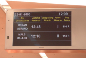 "Mit diesen Systemen lässt sich viel schneller und flexibler auf unterschiedliche Situationen reagieren als mit den klassischen Aushängen oder Durchsagen", so Widmann. "Der Fahrgast wird praktisch laufend mit den wichtigsten Informationen versorgt." Gesteuert wird das System von der Zugleitzentrale in Meran, wobei die Fahrgastinformationen zur Gänze automatisiert weitergegeben werden.