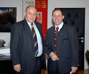 (LPA) Um die grenzüberschreitende Zusammenarbeit und deren Ausbau - vom Verkehr über die Kultur bis hin zu gemeinsamen Veranstaltungen im Andreas-Hofer-Gedenkjahr 2009 - ging es im gestrigen Treffen von Landeshauptmann Luis Durnwalder mit Georg Keuschnigg, Abgeordneter zum Nationalrat und neuer Hauptgeschäftsführer der Tiroler Volkspartei.