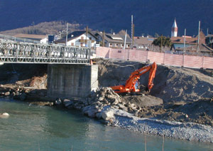 Um dieser Situation ein Ende zu bereiten, sind die Arbeiter der Wildbachverbauung unter der Bauleitung von Peter Egger seit der vorigen Woche dabei, der Bailey-Brücke ein neues Gesicht zu geben. "Die Brücke wird rundum saniert, sie wird um insgesamt sechs Meter verlängert, um einen halben Meter erhöht und es werden neue Widerlager errichtet", erklärt Projektant Hanspeter Staffler, Direktor im für die Etsch zuständigen Landesamt für Wildbach- und Lawinenverbauung Süd.