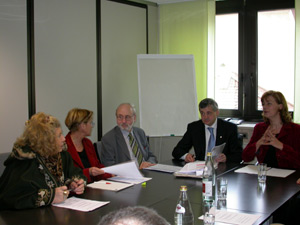 An der Aussprache nahmen die Präsidentin des Künstlerbunds, Helga von Aufschnaiter, der Präsident von "Kunst Meran", Georg Klotzner, die Architekten Markus Scherer und Wolfgang Wohlfahrt sowie die Künstlerin Wilma Kammerer und deren Kollege Hans Knapp sowie die Ressortdirektoren Josef March und Berta Linter teil.
