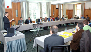 Landesrat Laimer hat der internationalen Runde das Südtiroler KlimaHaus-Projekt vorgestellt, das auch das energieeffiziente Bauen bei Gebäuden der öffentlichen Verwaltung unterstützt. Ressortleiter Walter Huber wies in seinen Ausführungen auf das erste öffentliche Passivbürohaus Italiens, das Ex-Post-Gebäude am Bozner Bahnhof, hin. Die landeseigene Immobilie ist in den vergangenen Monaten zu einem Landhaus mit fünf Geschossen und rund 110 Arbeitsplätzen umgebaut worden. Der Energieverbrauch liegt bei nur 1,5 Litern Heizöl pro Quadratmeter im Jahr. Passend zum angewandten Energiesparkonzept wird das Ex-Postgebäude künftig das Umweltressort beherbergen.