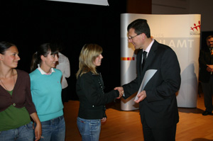 LPA - Mit dem Zertifikat "Qualitätsmarke Übungsfirma 2006" wurden heute (Dienstag, 30. Mai) in der Lehranstalt für Wirtschaft und Tourismus in Bozen 27 Übungsfirmen ausgezeichnet. "Die Übungsfirmenarbeit an Südtirols Schulen wurde vor neun Jahren dank der engen Zusammenarbeit mit Nord- und Osttirol aufgenommen", erklärte Schulamtsleiter Peter Höllrigl bei der heutigen Zertifikatsverleihung, der darauf hinwies, dass inzwischen alle 14 deutschen und ladinischen Oberschulen mit wirtschaftlicher Ausrichtung ein eigenes betriebswirtschaftliches Zentrum (BWZ) hätten und im heurigen Schuljahr an diesen Schulen insgesamt 44 Übungsfirmen arbeiteten.