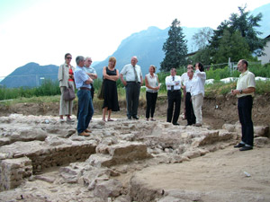 Am vergangenen Dienstag (11. Juli) haben Landeshauptmann Luis Durnwalder, Kulturlandesrätin Sabina Kasslatter Mur gemeinsam mit den Experten vom Landesdenkmalamt, Landeskonservator Helmut Stampfer und Grabungsleiterin Catia Marzoli, den Eigentümern und Vertretern der Gemeinde Eppan der Ausgrabungsstätte einen Besuch abgestattet. Wegen der großen Bedeutung der Funde streben Land und Gemeinde, in Abstimmung mit den Grundeigentümern, gemeinsam eine Lösung an, um die Böden zu konservieren und sie in Zukunft der Öffentlichkeit zugänglich zu machen.