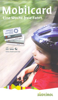 Einen weiteren Baustein hat Widmann heute der Öffentlichkeit vorgestellt: die "Mobilcard". Dieses Ticket ermöglicht es, zu einem Pauschalpreis die öffentlichen Verkehrsmittel im Südtiroler Verkehrsverbund zu benutzen, also Stadt-, Überland- und Citybusse, die Vinschger und die Rittner Bahn sowie die Seilbahnen Meransen, Jenesien, Mölten, Vöran und Ritten. Dabei ist die Karte nicht etwa fahrten-, sondern lediglich Zonen- und zeitbegrenzt. So gibt es für die Zone "Südtirol", in der das ganze Land inbegriffen ist, eine Sieben- und eine Dreitageskarte, wobei letztere sich flexibel an die Bedürfnisse der Nutzer anpasst: "Diese Dreitageskarte gilt nicht für drei Tage am Stück, sondern für drei beliebige Tage innerhalb einer Woche", erklärt dazu Gianfranco Jellici, Direktor des Mobilitätsressorts.