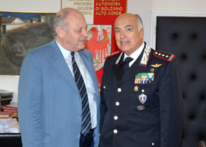(LPA) Landeshauptmann Luis Durnwalder hat heute (6. Oktober) den Kommandanten der Carabinieri-Region Nordost, General Libero Lo Sardo, empfangen. Im Gespräch zwischen den beiden ging es vor allem um die Zusammenarbeit zwischen dem Landesbetrieb und den Carabinieri in Südtirol.