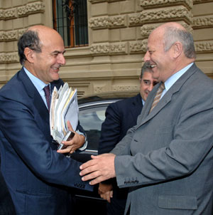 (LPA) Nachbesserungen beim Entwurf zum Haushaltsgesetz des Staates und eine größere staatliche Unterstützung bei der Verwirklichung des Brennerbasistunnels (BBT) und seiner Zulaufstrecken - dies waren die Forderungen, die Landeshauptmann Luis Durnwalder heute (17. Oktober) dem Minister für wirtschaftliche Entwicklung, Pierluigi Bersani, vorgelegt hat. Bersani war heute zu Gast in Bozen.