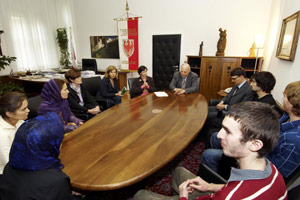 LPA - Als eine Form der Entwicklungszusammenarbeit, die ihm besonders am Herzen liege, bezeichnete Landeshauptmann Luis Durnwalder heute (Mittwoch, 18. Oktober) die Studienförderung für Studenten aus Krisenregionen oder Ländern in Notsituationen. Im vergangenen Akademischen Jahr hatten zwei tibetische und vier südostasiatische Studenten ein Studium an der Freien Universität Bozen aufgenommen, in diesem Jahr kamen drei Studentinnen aus Afghanistan und drei Studenten aus Tschetschenien hinzu. In Begleitung von Rektorin Rita Franceschini statteten die sechs neuen Studenten heute (Mittwoch, 18. Oktober) Landeshauptmann Luis Durnwalder einen Vorstellungsbesuch ab.