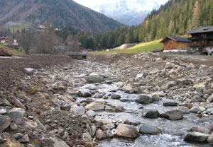 "Es war uns wichtig, den Eingriff so zu gestalten, dass er der Landschaft und den ökologischen Gegebenheiten des hinteren Ultentals entspricht", erklärt dazu Peter Egger, der das Projekt ausgearbeitet und die Bauleitung übernommen hat. So wurden die Ufer mit groben, unregelmäßig verlegten Zyklopensteinen gesichert. Gleichzeitig sollte sich der Bach bei Niedrigwasser mäanderförmig ausbreiten können.