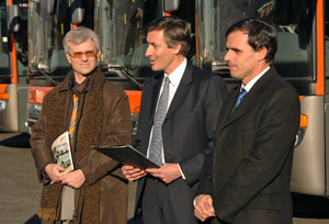 (LPA) In ganz Europa hat es noch keine so umfangreiche Lieferung an Euro-5-Bussen gegeben, wie jene, die die Landesräte Thomas Widmann und Richard Theiner heute (29. Jänner) in Bozen vorgestellt haben. Die 50 nagelneuen SAD-Busse werden in Zukunft umweltschonend in der Umgebung von Bozen, Meran und Bruneck unterwegs sein.