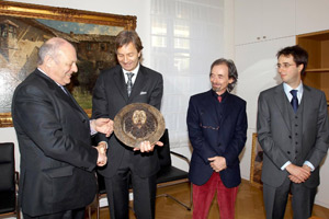 Bei der heutigen Übergabe am Sitz der Sparkassenstiftung waren neben LH Durnwalder und Stiftungspräsident Brandstätter, Museumsdirektor de Rachewiltz und Mitarbeiterin Paula Mair anwesend.