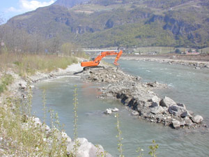 Darüber hinaus sorgt die Wildbachverbauung für die Sicherung von Rutschhängen durch Holzsperren und ingenieurbiologische Maßnahmen. Und auch der ökologischen Verbesserung bestehender Verbauungen und Gewässerregulierungen kommt immer größere Bedeutung zu. So werden Flussabschnitte erweitert und Sicherungsbauten fischgerecht gestaltet, etwa an der Etsch, der Ahr, am Sextnerbach, Eisack und Antholzerbach. In Sachen Lawinenschutz werden schließlich große Bauvorhaben in Martell, Ridnaun, an der Gampenstraße in Tisens und in Schnals in Angriff genommen.