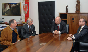 Befasst hat sich die Landesregierung auch mit Fall „Johann Mathá“. Wegen eines tragischen Badeunfalls vor 20 Jahren im Andrianer Schwimmbad droht dem ehemaligen Tourismusvereinspräsident Mathá die Pfändung seines Hofes, weil er 1,8 Millionen Euro Schadenersatz bezahlen muss. Die Landesregierung überprüfe nun die rechtliche Möglichkeit, einen Gesetzesartikels ins Finanzgesetz zum Nachtragshaushalt einzufügen, um in diesem Fall konkret zu helfen, sagte Durnwalder. Vorerst wollen der Landeshauptmann und alle Landesräte als Zeichen der Solidarität Mathá jeweils 1000 Euro spenden. Landeshauptmann Durnwalder und Landesrat Werner Frick haben sich heute mit Mathá getroffen und noch einmal im Detail über den Fall gesprochen. (Foto des Treffens im Anhang)