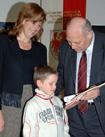 LPA - Dem neun Jahre alten Tobias Reifer haben Landeshauptmann Luis Durnwalder und Kulturlandesrätin Sabina Kasslatter Mur heute, 2. April, in Bozen einen Sonderpreis für seine Leistung beim Gesamttiroler Wettbewerb „Prima la musica“ überreicht. Reifer hatte beim Wettbewerb eine ausgezeichnete Präsentation auf dem Tenorhorn geboten, war aber aus technischen Gründen bei der Preisverleihung vergessen worden.
