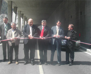 LPA - Landeshauptmann Luis Durnwalder, Landesrat Florian Mussner und Landesrat Richard Theiner haben heute, 13. April 2007, die neue 355 Meter lange Steinschlagschutzgalerie auf der Staatstraße aufs Stilfser Joch zwischen Gomagoi und Trafoi offiziell eröffnet. Wie die Landesvertreter betonten, soll die neue rund 7,5 Millionen Euro teure Galerie den gefährlichen Straßenabschnitt zwischen Gomagoi und Trafoi sichern und die Zufahrt nach Trafoi und auf das Stilfser Joch das ganze Jahr über garantieren.