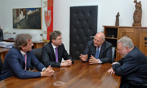 (LPA) Eine hochrangige Delegation des ORF, angeführt vom neuen Generaldirektor Alexander Wrabetz, hat Landeshauptmann Luis Durnwalder heute (27. April) einen Besuch abgestattet. Im Mittelpunkt des Treffens stand die Zusammenarbeit zwischen dem Österreichischen Rundfunk und dem Land Südtirol, nicht zuletzt in Form von "Südtirol heute".