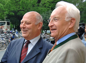 Durnwalder und Stoiber brachten beim heutigen Aufeinandertreffen noch einmal ihren übereinstimmenden Standpunkt zur Notwendigkeit des Brennerbasistunnels zum Ausdruck. Durnwalder: „Wir sind nach wie vor überzeugt, dass es derzeit keine Alternative zum Ausbau der Schiene zwischen München und Verona, den Brennerbasistunnel mit eingeschlossen, gibt. Der Transitverkehr muss auf lange Sicht zu zwei Dritteln auf die Schiene verlegt werden und soll nur mehr zu einem Drittel über die Straße verlaufen. Nur auf diese Weise ist langfristig ein Schutz des sensiblen Alpenraums möglich. “ Durnwalder hat Stoiber den Stand der Planungsarbeiten sowie den Finanzierungsplan erläutert und dabei auch den Standpunkt des italienischen Infrastrukturministers Antonio Di Pietro dargelegt, den er erst kürzlich zu einer Aussprache im Palais Widmann empfangen hat. Stoiber hat seine volle Zustimmung zum Ausbau der Schiene gegeben und betont, dass die Potenzierung der Strecke München – Verona auch für Bayern sehr wichtig sei: „Die wirtschaftlichen Beziehungen Bayerns zu Italien sind im Ausbau begriffen. Auch im Lichte des von der EU erst vor kurzem eingeforderten Klimaschutzes ist es notwendig und möglich die beiden Staaten Deutschland und Italien von der Notwendigkeit des Brennerbasistunnels als Herzstück der Achse Berlin – Palermo zu überzeugen.“ Durnwalder und Stoiber haben auch über eine mögliche Beteiligung Bayerns an der BBT SE gesprochen.