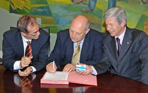 Die erste der für die digitale Unterschrift notwendigen Smartcards hat heute Landeshauptmann Durnwalder aus den Händen der für die Informatik und die Finanzen zuständigen Landesräte Berger und Frick entgegen genommen. "Dieses neue informatische Instrument ermöglicht es uns, die internen Abläufe zu vereinfachen und zu beschleunigen, weil der Schriftverkehr auf Papier dann der Vergangenheit angehört", so Durnwalder. Und Landesrat Frick ergänzt: "Wir sparen damit Kosten in der Verwaltung und erleichtern außerdem den Datenaustausch mit dem Ministerium." Für Landesrat Berger stellt die Einführung der Smartcard innerhalb des Landesbetriebs auch einen Testlauf für die digitale Kommunikation mit dem Bürger dar: "In Zukunft soll die digitale Unterschrift auch zwischen Land und Bürgern zum Einsatz kommen", so Berger.