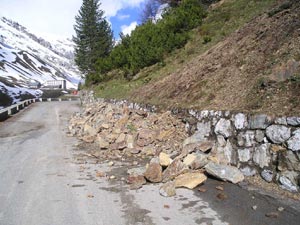 Bei der Schneeräumung kommen jedes Jahr verschiedene Schäden an der Fahrbahn, an den Berg- und talseitigen Stützmauern, an den Begrenzungsbrüstungsmauern usw. zum Vorschein, die es zu reparieren gilt. Heuer ist die talseitige Straßenstützmauer zwischen der vierten und fünften Kehre abgebrochen. Die Stützmauer wurde innerhalb einer Woche provisorisch instand gesetzt. Ein weiter Sicherungseingriff ist notwendig. Dieser wird im Herbst erfolgen wenn die Straße gesperrt ist.