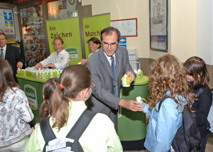 Ein Zeichen setzen: LR Frick verteilt Trinkjoghurts mit dem Qualitätszeichen (FOTO:LPA/Pertl)