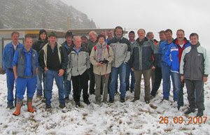 Vertreter der beiden betroffenen Gemeinden Tisens und Unsere Liebe Frau im Walde / St. Felix - allen voran die Bürgermeister Thomas Knoll und Waltraud Kofler - haben gemeinsam mit den Verantwortlichen im Landesamt für Wildbach- und Lawinenverbauung Süd der Baustelle einen Besuch abgestattet. Diese liegt im Anbruchgebiet der Lawine hoch über der Gampenpassstraße auf Gemeindegebiet von Tisens. Hier sind die Arbeiter der Wildbachverbauung damit beschäftigt, im Rahmen von mehreren Baulosen an die 1000 Laufmeter Schneenetze anzubringen.