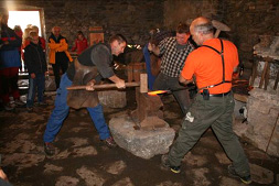 Gleich mehrmals im Jahr sorgt eine Gruppe engagierter Metallhandwerker dafür, dass den Besuchern des Erlebnisbergwerks die gesamte Kette der Metallverarbeitung vor Augen geführt werden kann: von der Erzgewinnung über die Verhüttung bis hin zur Bearbeitung des Metalls. Die längste Tradition hat dabei das "Schauschmieden" im Herbst, das auch in diesem Jahr wieder zahlreiche Interessierte angezogen hat. Unter der Leitung der Berufsschullehrer Arnold Sulzenbacher, Andreas Pernstich und Alfred Wanker haben sich erfahrene Schmiede aus dem ganzen Land an der Iniative beteiligt.