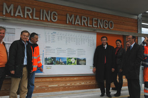 LPA - Der Bahnhof Marling wurde als erster der Bahnhöfe der Vinschger Bahnlinie mit einer neuen Schautafel ausgestattet, auf der Bahngäste Informationen über die Vinschger Bahn, die Fahrpläne sowie touristische Informationen finden. "Auf diese Weise soll der Aufenthalt auf den Bahnhöfen kurzweilig und informativ werden", so der Landesrat für Mobilität und Tourismus, Thomas Widmann.