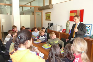 (LPA) "Es ist immer motivierend, wenn man sieht, mit welchem Engagement Kinder Umweltthemen angehen." Dieses Fazit zieht Umweltlandesrat Michl Laimer, der heute (6. November) ungewöhnlichen Besuch bekommen hat. Eine Grundschulklasse aus Welsberg hatte dem Landesrat ihre Aufwartung gemacht und wollte alles über Klimaschutz und Energiesparen wissen.