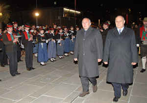 Nach dem Abschreiten der Ehrenformation der Schützen begrüßte Durnwalder den Bundeskanzler offiziell vor Vertretern der Institutionen sowie aus Politik und Wirtschaft - darunter die Landesräte Werner Frick, Sabina Kasslatter Mur, Luigi Cigolla, Florian Mussner, Luisa Gnecchi und Richard Theiner - im Thermenhotel in Meran. "Es ist für uns immer wieder ein Grund zu Freude, wenn wir Freunde in Südtirol begrüßen können, Freunde, die hinter uns stehen, uns bestärken und an die wir uns jederzeit wenden können, wenn wir Hilfe brauchen", so der Landeshauptmann. Wien sei immer für Südtirol da, ganz unabhängig von der Couleur der jeweiligen Regierung.