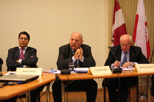 Landeshauptmann Luis Durnwalder begrüßte die Tatsache, dass erstmals vergleichende Daten der acht Mitgliederstaaten der Alpenkonvention vorlägen. Seit 1988 als er zum Landeshauptmann gewählt worden sei, seien die Themen Maut und Transit präsent. "Getan wurde aber bisher wenig." Eine Angleichung des Mautsystems von Deutschland, Italien und Österreich an die Schweiz sei unerlässlich, aber bisher immer an der Diskussion um die Kompetenz gescheitert. "Trotz unserer wiederholten Forderungen", so Durnwalder, "ist es nicht einmal gelungen, eine Vereinheitlichung mit unserem direkten Nachbarn Österreich zu erreichen."