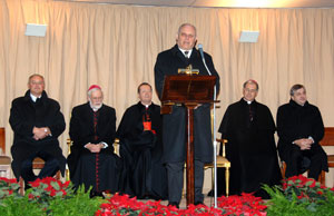 Lajolo bedankte sich in seiner Ansprache noch einmal bei den Bürgern der fünf Gadertaler Gemeinden, die dem Vatikan den Christbaum geschenkt haben. Am Anblick des Baums könne sich in den Weihnachtsfeiertagen nicht nur der Vatikan erfreuen, sondern darüber hinaus alle Römer und die zahllosen Pilger aus aller Welt, die über Weihnachten zum Petersdom strömten. Der Kardinal fand dazu herzliche Worte für die Südtiroler, die fleißig seien und fest in ihren Traditionen verwurzelt.
