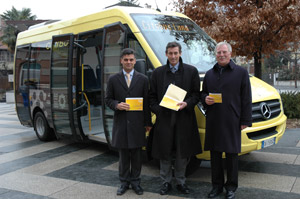 (LPA) Ab kommendem Montag, 21. Jänner, verfügt auch Lana über einen Citybus, den zehnten im Lande. Mobilitätslandesrat Thomas Widmann hat das neue Angebot im öffentlichen Nahverkehr in der Burggräfler Großgemeinde heute (17. Jänner) vorgestellt. "Der Citybus ist mittlerweile ein fester Bestandteil unseres Nahverkehrs und er wird sich auch - davon bin ich überzeugt - in Lana bewähren", so Widmann.