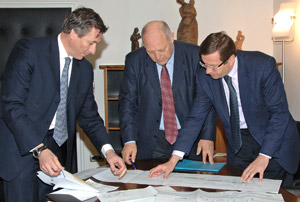 Pläne studiert: LR Widmann, LH Durnwalder und Bürgermeister Januth (Foto: LPA/Pertl)
