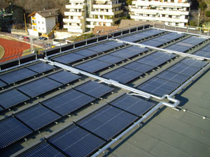 Fast 600 Quadratmeter Fläche nehmen die Solaranlagen auf dem Dach der Schule ein