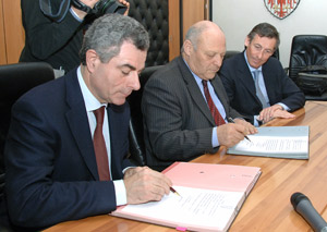 (LPA) Gleich zwei wichtige Vereinbarungen für die Zukunft des Zugverkehrs hat Landeshauptmann Luis Durnwalder heute (18. Februar) im Beisein von Landesrat Thomas Widmann mit Eisenbahn-Chef Mauro Moretti unterzeichnet. Es geht darin um die Übernahme weiterer fünf Bahnhöfe der Brennerbahn und um die notwendigen Arbeiten an der Pusterer Bahn, um dort einen Halbstundentakt zu ermöglichen.