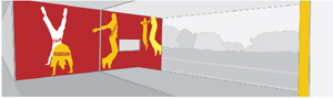 Farbige Schattenrisse einiger hüpfender Schüler schlägt die Künstlerin Bornefeld als Wandgestaltung am neuen Pädagogischen Gymnasium in Brixen vor