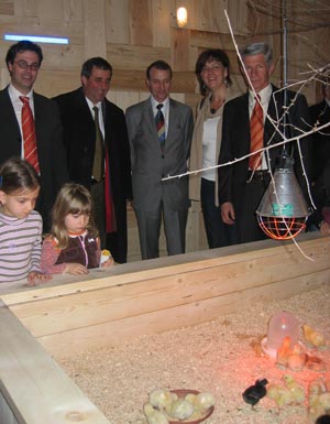 „Besonders bei den jüngeren Museumsbesuchern ist die Kükenshow ein Renner, denn sie bringt wirkliches Lebens ins Museum“, sagte Kulturlandesrätin Kasslatter Mur bei der Eröffnung der Kükenshow. Gerade rund um das Osterfest gebe es viele Bräuche, die auch mit der Natur zu tun haben, und deshalb sei die Kükenshow auch für diesen Anlass passend, meinte die Landesrätin. Auch Landesrat Berger unterstrich, dass es wichtig sei, Kinder nicht nur für Technik, sondern auch für die Natur zu begeistern, denn dies habe eine nachhaltige Wirkung. „Wenn die Kinder die Tiere kennen lernen, haben sie auch mehr Verständnis für die Menschen, die mit diesen Tieren arbeiten“, sagte Berger. Anwesend waren bei der Eröffnung auch der Direktor des Naturmuseums Vito Zingerle, der Vizepräsident der Südtiroler Landesmuseen Heinrich Huber, der Bozner Bürgermeister Luigi Spagnolli, der Präsident von CRAB Claudio Calissoni, der Präsident des Südtiroler Kaninchenzüchterverbandes Raimund Grumer, sowie mit Johanna Scartezzini Plasinger vom Stiftungsrat der Südtiroler Sparkasse.