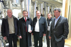 Energielandesrat Laimer hat gemeinsam mit dem Präsidenten des Biomasseverbands Hanspeter Fuchs, dem Ultner Bürgermeister Rudolf Ties, und dem Bürgermeister von St. Pankraz Hermann Tumpfer sowie Rupert Rosanelli vom Unternehmen Syneco einen Rundgang durch das neue mit der innovativen ORC-Anlage ausgestattete „Heizwerk St. Walburg“ im Ultental gemacht. ORC-Anlagen sind Anlagen zur Kraft-Wärme-Koppelung (KWK), d.h. Anlagen, bei welchen gleichzeitig Strom und Wärme erzeugt wird. Der wesentliche Unterschied einer ORC-Anlage im Vergleich zu einer herkömmlichen KWK-Anlage ist jener, dass bei ORC-Anlagen als Arbeitsmittel in der Dampfturbine nicht wie sonst üblich Wasser, sondern organische Flüssigkeiten wie Silikonöle mit einer niedrigen Verdampfungstemperatur verwendet werden.