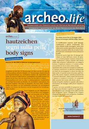Als eine der neuen Ideen erscheint ab April 2008 im Südtiroler Archäologiemuseum ein neues Dreimonatsprogramm. Es heißt „archeo.life“, so wie die lebendigen Angebote im Archäologiemuseum und wurde zu einer Zeitschrift ausgebaut. Die neue, vierfarbige Zeitschrift ersetzt den bisherigen Veranstaltungskalender und informiert Interessierte auf acht Seiten viermal im Jahr über Neues, Wissenswertes und Kurioses aus dem Archäologiemuseum. Die Veranstaltungen finden sich im zweiten Teil der Zeitschrift, in Kurzversion und können so auch einfach herausgetrennt und an die Pinwand gehängt werden.