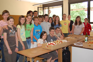 Am Ende der Vorstellung konnten alle Besucher an einem Quiz teilnehmen, in dem sie das erworbene Wissen umsetzen konnten. Gewonnen hat die Klasse 2D der Mittelschule Lana, die nun von den Schülerinnen der dritten Klasse der Fachschule Frankenberg mit einem bunten Jausenpaket überrascht worden sind. Darin fanden sich selbst gebackene Brötchen mit Kräuteraufstrichen, Spieße mit Mozarella und Tomaten sowie Obst. Dazu gab's selbst gemachten Apfelsaft.