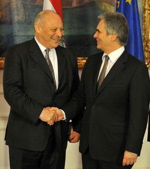 Um den Brenner-Basistunnel, die Alpenkonvention und die Studientitelanerkennung ging es beim heutigen Treffen von LH Durnwalder mit Kanzler Faymann