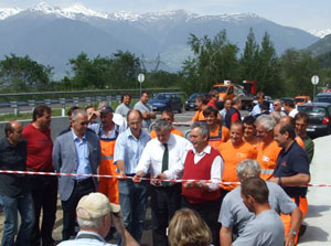 Wie gefährlich das Queren der Straße war, zeigt auch ein tödlicher Unfall vor drei Jahren, der dazu geführt hat, dass der Landesstraßendienst Vinschgau und die Gemeinde Laas nach einer sicheren Lösung des Problems gesucht haben. Diese wurde in Form einer 34 Meter langen Unterführung aus Betonfertigteilen gefunden, die heute von Landesrat Mussner und dem Laaser Bürgermeister Andreas Tappeiner offiziell in Betrieb genommen worden ist. Die Unterfürhung kann nun von Fußgängern und Radfahrern genutzt werden, um gefahrlos die Vinschger Straße zu unterqueren.