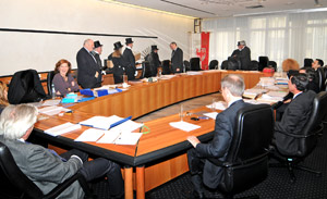Neben Fleiß und Ernsthaftigkeit kann ein bisschen Glück auch der Landesregierung nicht schaden. Dies wissen auch die Kaminkehrer im Landesverband der Handwerker, die deshalb zum Jahreswechsel bereits traditionell als personifizierte Glücksbringer der Landesregierung eine Stippvisite abstatten und dafür auch stets willkommen sind. Standesgemäß ganz in schwarz überbrachten die vier Kaminkehrer und eine Kaminkehrerin den neun Mitgliedern der Landesregierung ihre Glückwünsche für das neue Jahr 2010. Angeführt wurde die Glücksbringer-Delegation vom stellvertretenden Obmann der Kaminkehrer im Landesverband der Handwerker, Alois Pichler, der von seinen Kollegen, Heinrich Schupfer, Markus Grünberger, Helmuth Holzner und Greti Resch begleitet worden ist.