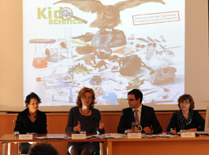 Bei der Vorstellung von "KidScience": Letizia Ragaglia, LRin Sabina Kasslatter Mur, Vito Zingerle und Giulia Rasola